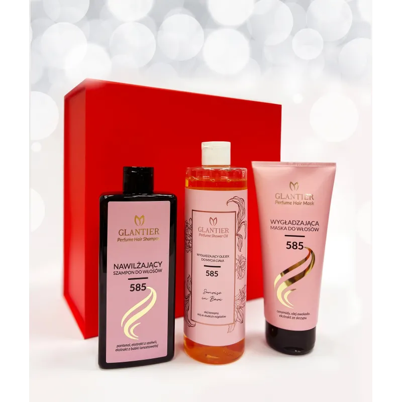 Gift Box z pudełkiem Glantier 585 to szykowny podarunek dla kobiet, które kochają dopieszczający rytuał pielęgnacyjny i eleganckie zapachy.